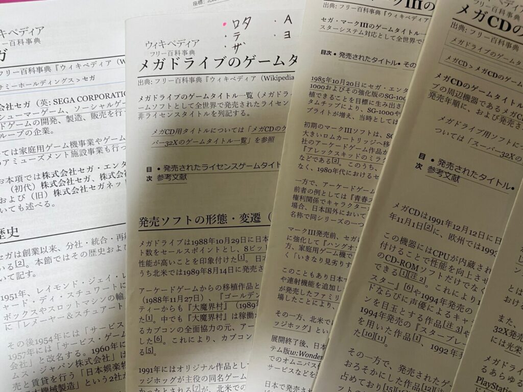 ゲーム愛、セガ愛を語り、飲み食べる中ロタ部長がカバンからごそっと分厚い書類を取り出しました。