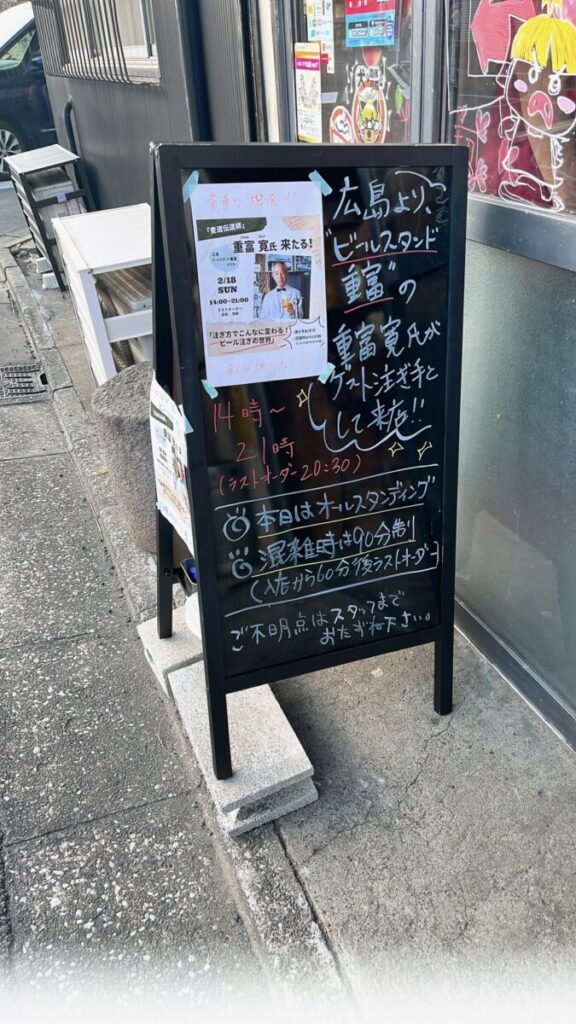 広島にはビア活で過去数回訪れていて、お弟子さんが注いでいる広島駅にある「ビールスタンド重富ekie」では飲んだことがあるのですが、重富さん自身のいる「ビールスタンド重富」は行列が激しくいつも諦めており(やはりクラフトビール巡りに時間を割きたいので…)、重富さんが注ぐビールを実際に飲んだことがありません。
