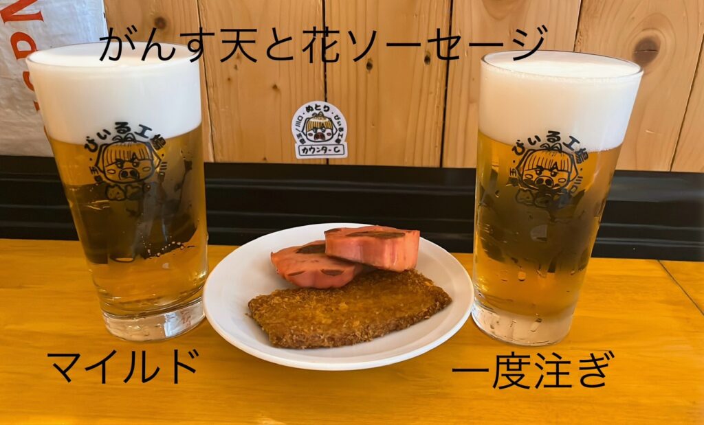 最初は両極端な飲み比べをしたく、「一度注ぎ」と「マイルド注ぎ」を同時に注文しました(ともに750円です)。