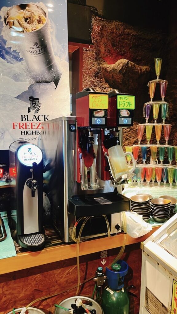 ビール用ジョッキは隣の冷凍庫の中にたくさん入っています。