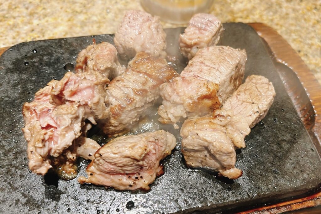 ビールを飲んで席で待っていると乱切りステーキが到着!
