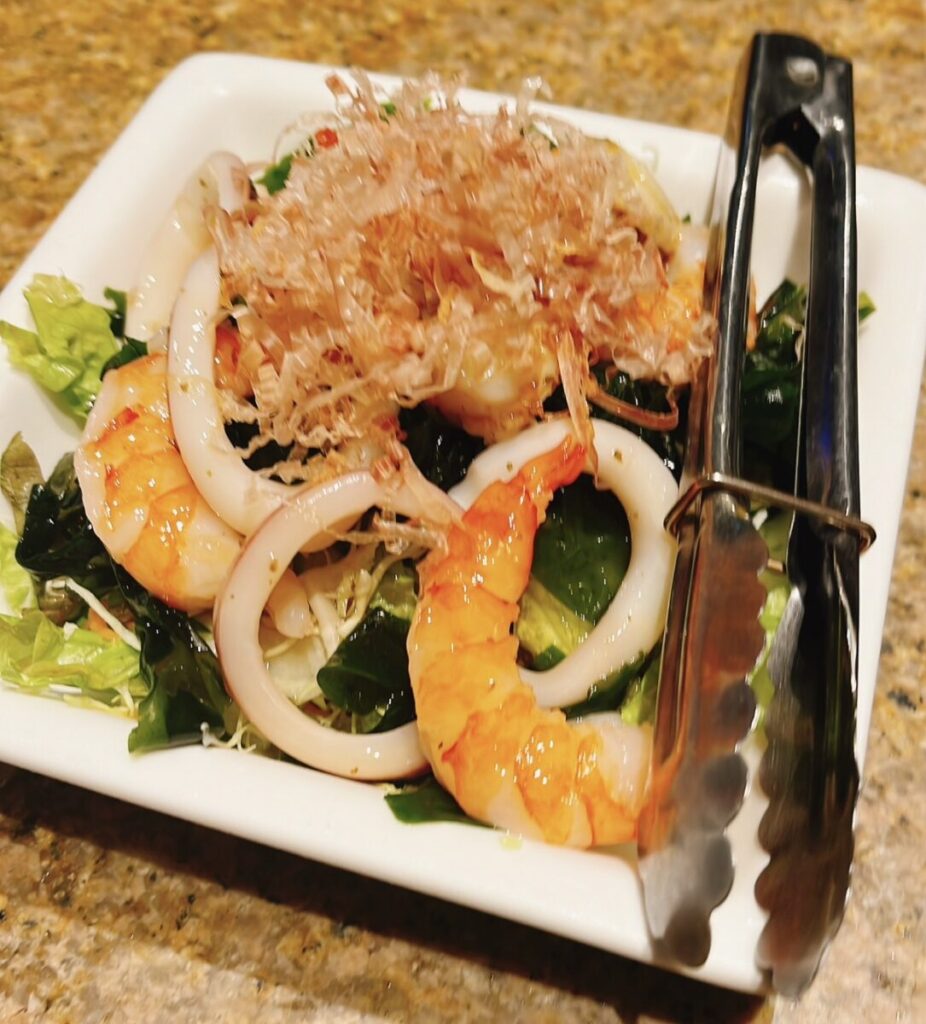 続いて海鮮サラダが来ましたが、エビもイカもたっぷりでしっかりしたサラダでした!