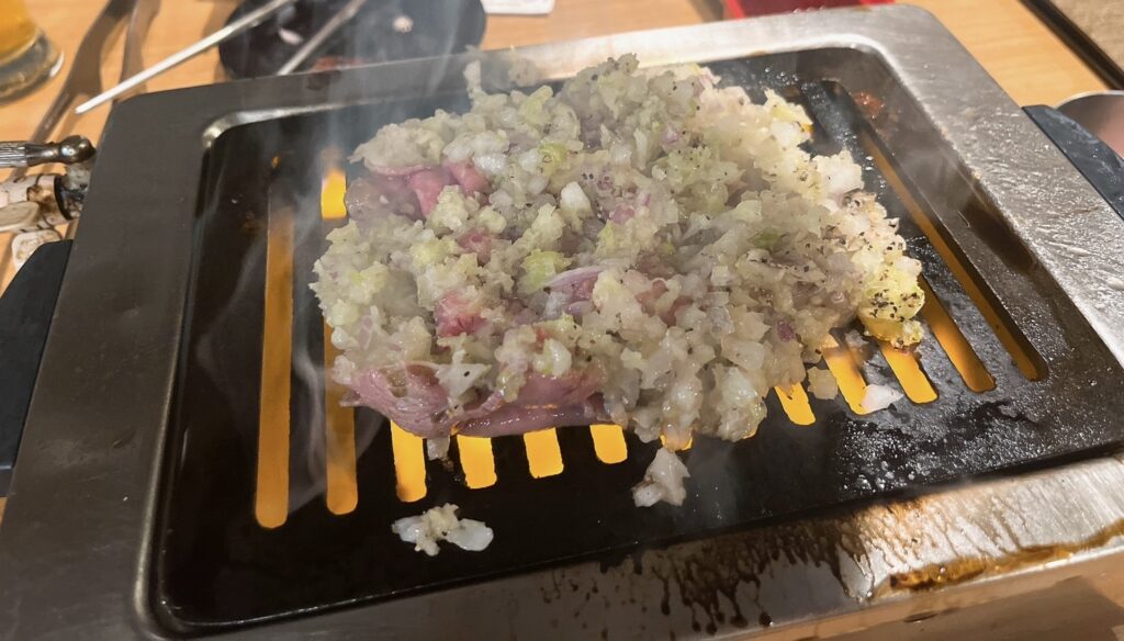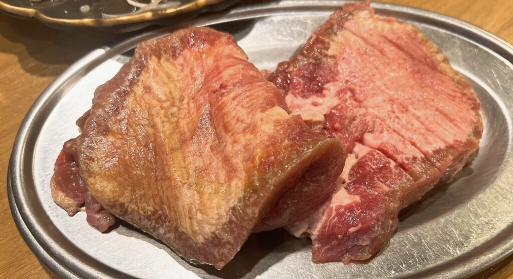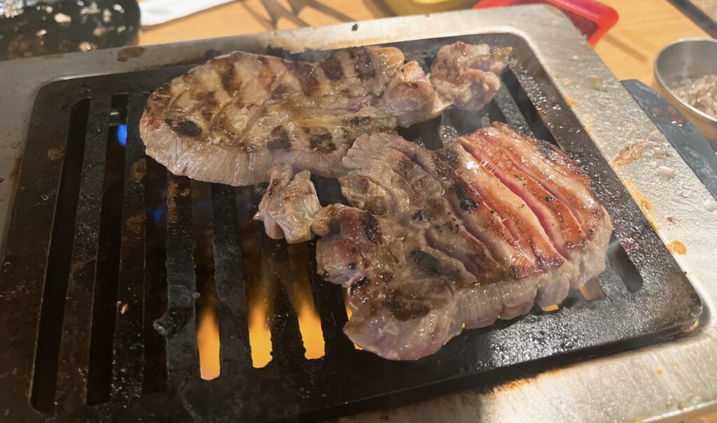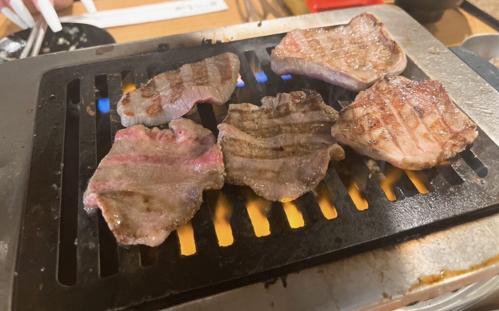 厚切りタンは焼いてから網の上でハサミでチョキチョキしてちゃんと中まで焼いてくれました。