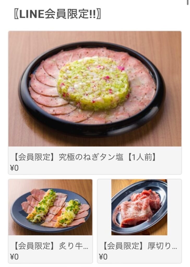 LINE会員限定の「厚切り仙台牛たん」は分厚くて柔らかくて塩味がついていて一番のお気に入りでした!