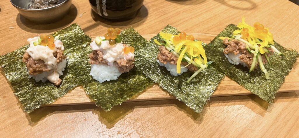 ・レモンタルタル牛タン寿司 2個(1個150円相当、計300円)