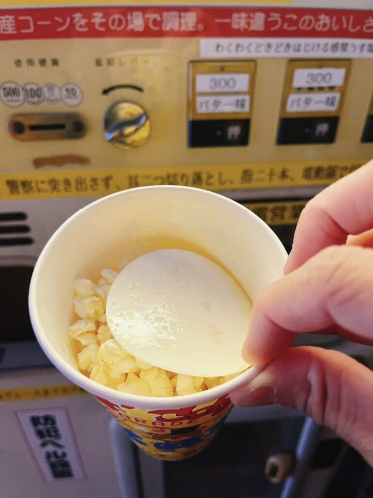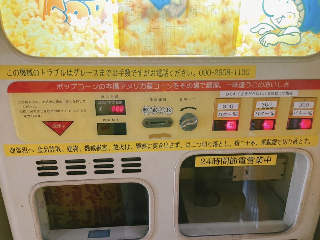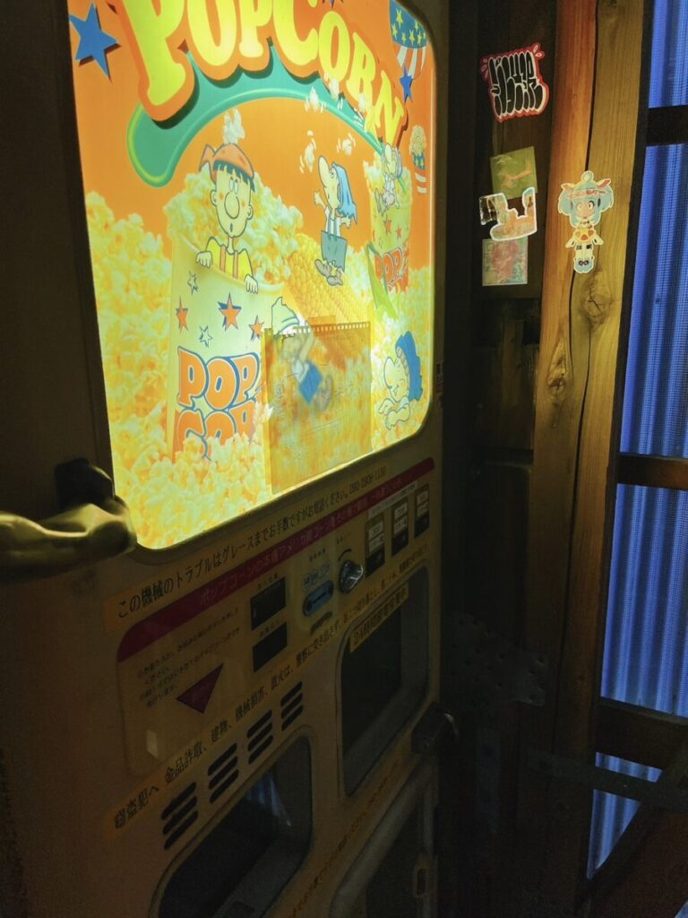 とりあえず奥の方にポップコーンの自販機があったので、腹ごしらえに買ってみました