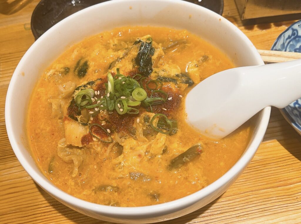 ユッケジャンスープは卵と豚肉が結構入っていてボリュームがあり、スープは辛くておいしかったです。
