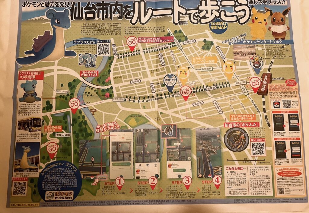まず仙台駅へ着くと、GOフェスの装飾がされていたて、アーケード商店街に入るとGOフェスの幟が立ってたり、GOフェスの号外が配布されていたり、ポケモン関連の商品をお店の前に出していたり(下駄屋?みたいな渋いお店でポケモンのスリッパ売ってたり、古着屋でポケモンの古着Tシャツを店先に複数出していたり)、街全体でGOフェスを盛り上げようとしていて、こちらも気分が上がってたくさんお金落とそう!って思いました。