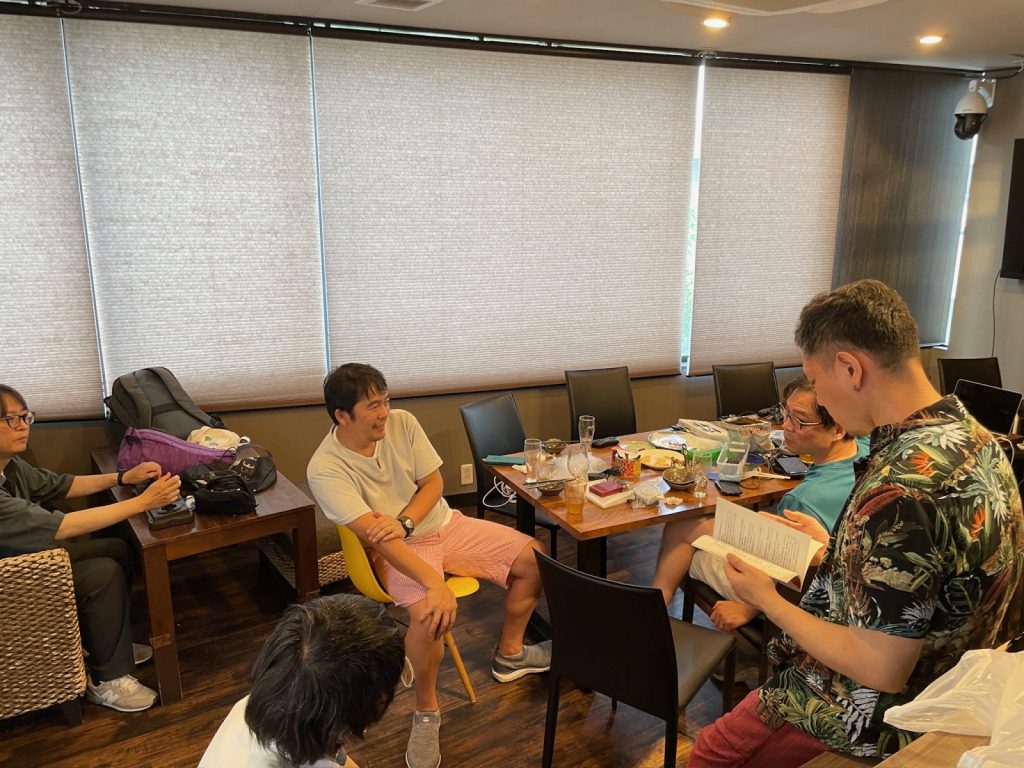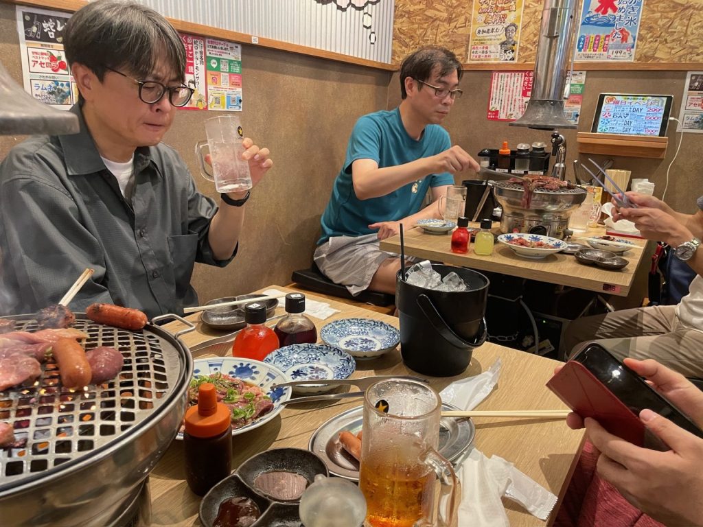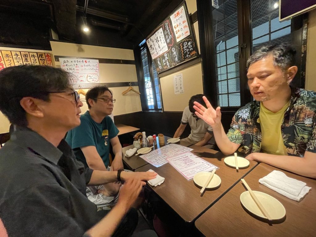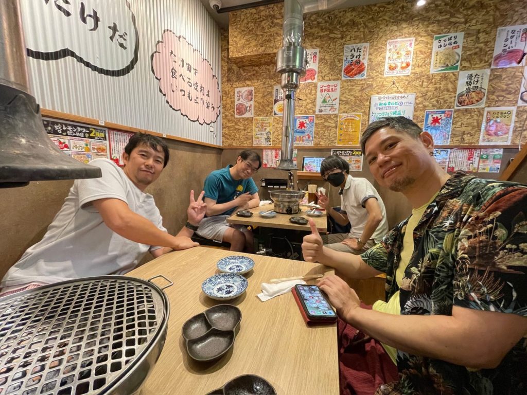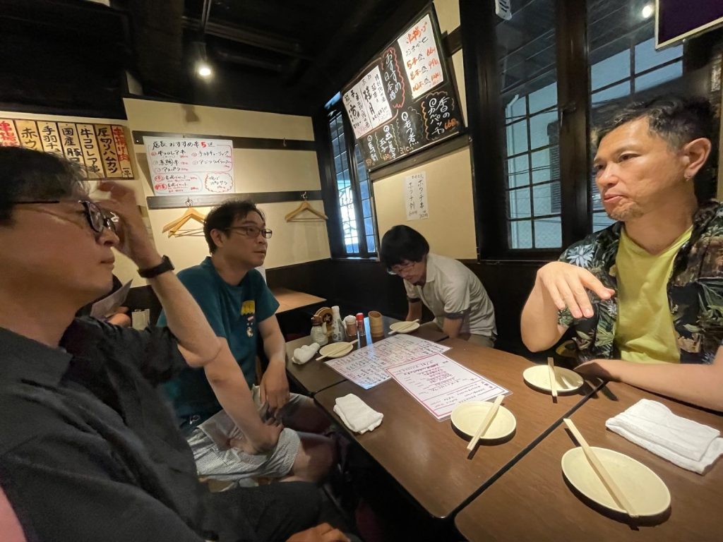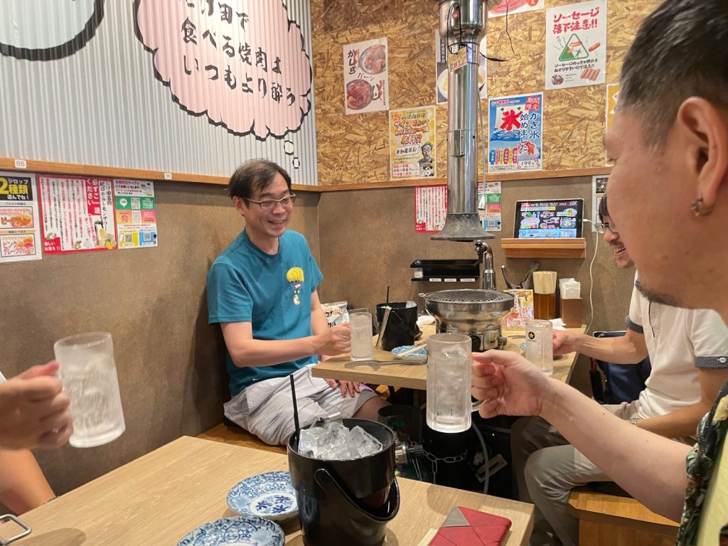 少し遅れてヨッシーも合流!メインメンバー全員集合でもう一度乾杯!