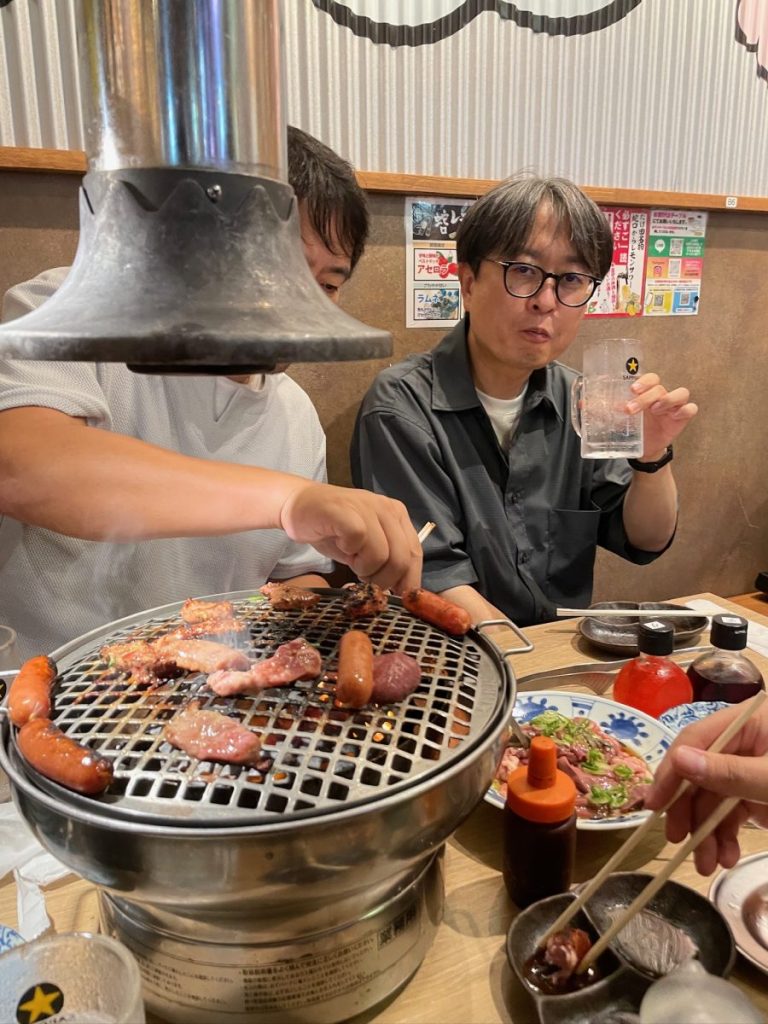 しかしホルモンと侮るなかれ!レバーや豚トロなど(部位はおまかせで出てくる)めちゃくちゃ美味しいではないか!!最初はTeru兄が一生懸命焼いてくれていたが、オーダーは1時間以内(その後席は30分まで)なので次々頼む、共同作業で焼いていく!皆「美味い!」を連呼しながらレモンサワーが止まりません!!度数は8度もあるのですが、割とさっぱりしたレモンサワー。お酒をあまり飲まないとめぞうさんも結構グビグビいっておりました!(味変用のシロップも6種類中4種類選べました)