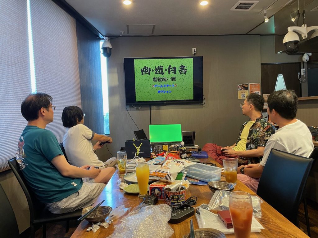 そんなこんなであっという間に制限時間が来てしまいましたが、余りに楽しいので一時間延長コースに変更。存分に最後まで遊ぶぞ皆の衆!と言うことでザッキーは30年振りじゃないかと言う「幽遊白書・魔強統一戦」を4人でプレイする事に!!