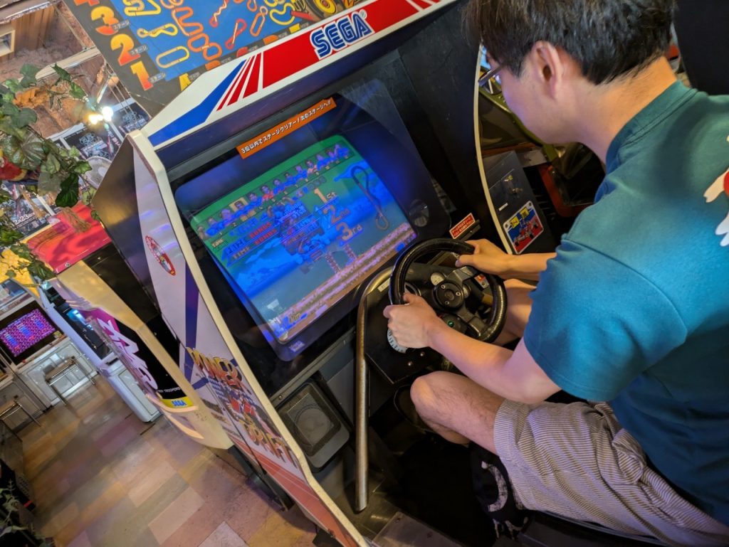 長らく家庭用のテレビゲームを買ってもらえずすっかりゲーセンっ子として育ったANIは狂喜乱舞ですよ!メタルホークで自慢の腕を披露!とめぞうさんとデイトナ対決!(これはハンドルが壊れててゲームになりませんでしたが)今この大型筐体が可動する状態動いている事に皆感動しましたね!!