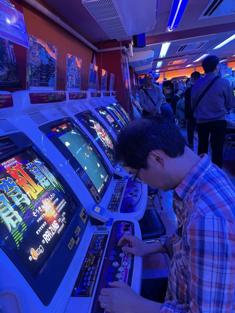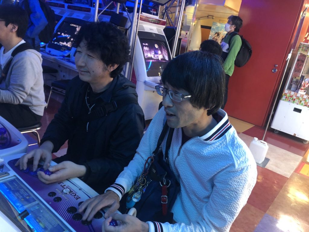 たらふく美味しいモツ料理を堪能しホロホロでいい気分になった所で秋葉原の中心地に移動!ゲーセン「Hey」に向かいます。それぞれ思い思いのゲームをプレイ!今回は対戦大会というよりまったりじっくりゲームに向かい合う感じ。部長は「蒼穹紅蓮隊」をプレイ!サターンの思い出があるそう。僕とザッキーは、以前ザッキーにPS2版を貸しておいた「エスプガルーダ」を2人協力プレイ!やっぱりお互いそれなりにプレイしただけあってそこそこ進めますぞ!楽しい!!