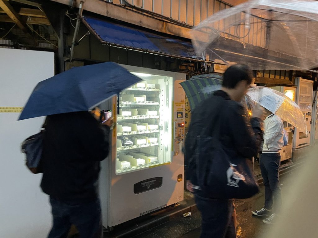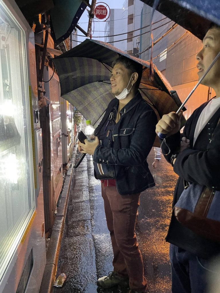 段々と雨脚が強くなってきましたが、ガード下の部品街を通りながら電気街へ。とめぞうさんの買い物(アケコンのボタン)に向かいます。雨とは言え連休の土曜日のせいか人が多いです。ザッキー・とめぞう組、部長・ヨッシー・ANIとバラバラに。なんとかミッション達成した後合流。ついでにこのブログ名物でもある「秋葉原の謎の自販機」に向かう事にしました!w