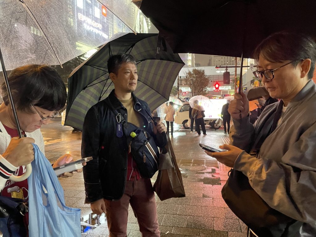 各自あっちでもないこっちでも無いと動いて出会えませんがチャットで階段に集合!とめぞうさんが買いたいと言うパーツ(アーケードコントローラーのボタン)を買う為電気街へ移動します!
