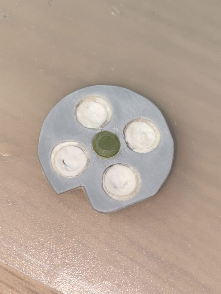 switchのボタンの位置にジャンクのコントローラーからキロとったゴムの部分を乗せてアタリをつけます。