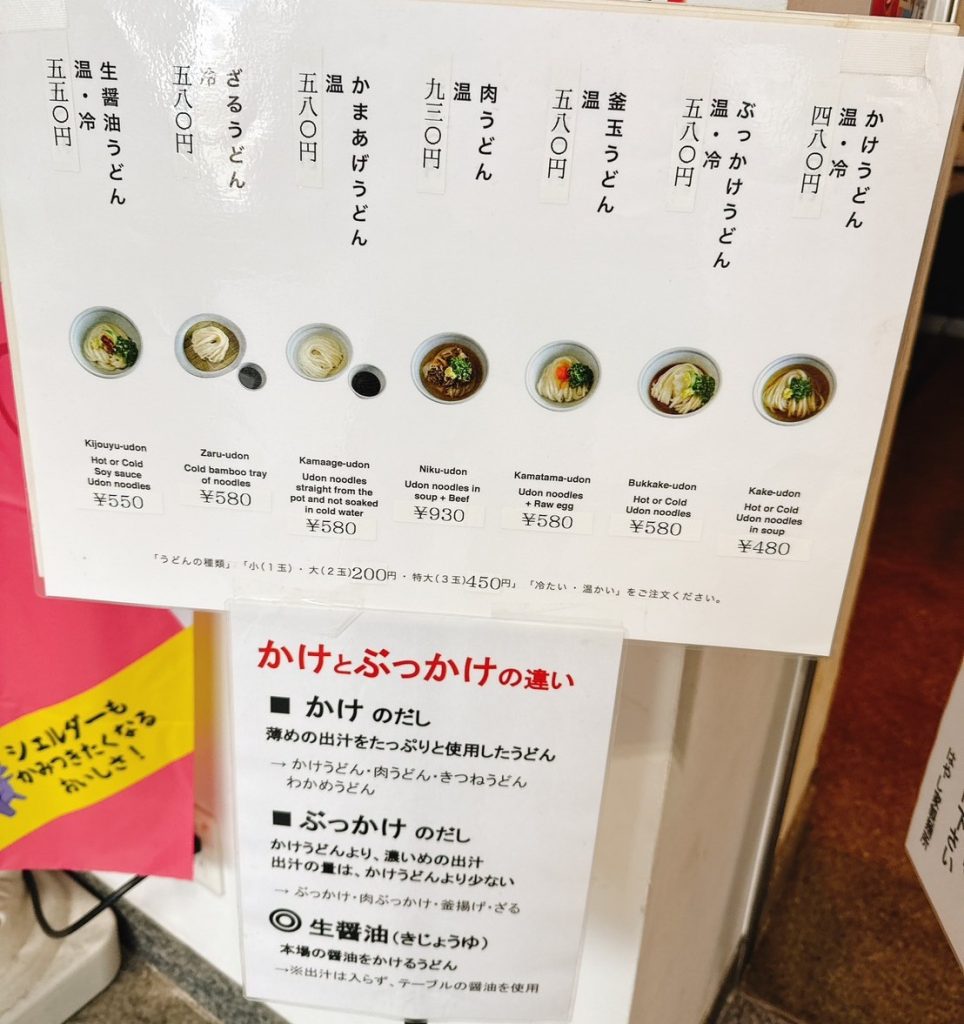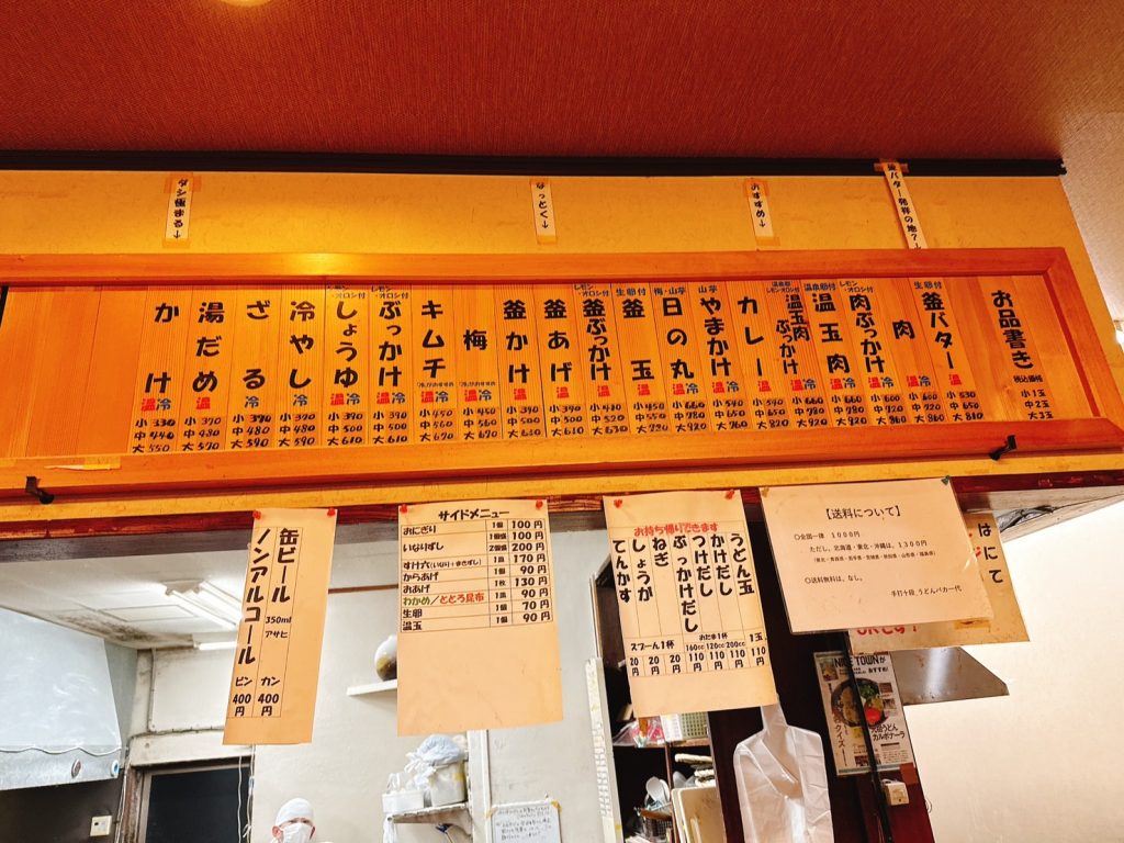 メニュー。山かけうどんはここでしか見ませんでした。二杯食いもしたいなぁ…