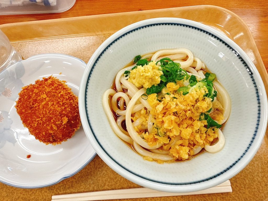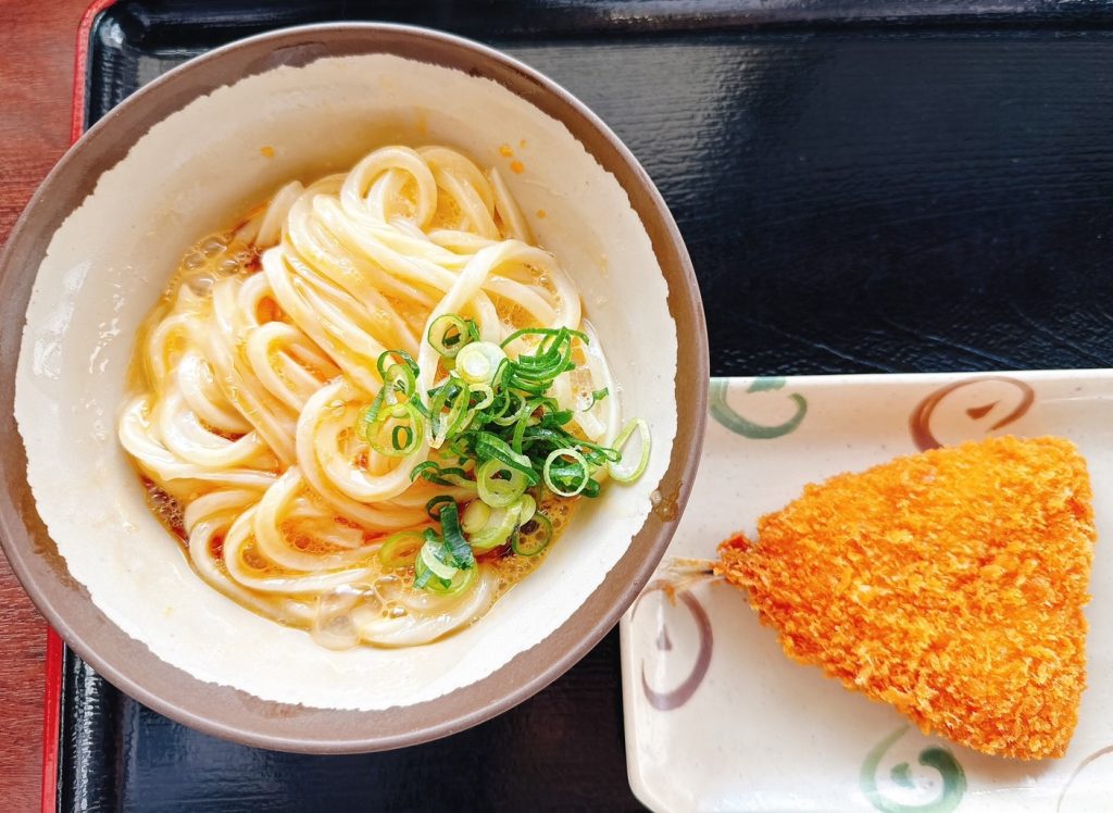 コロッケは揚げたてサクサクって感じで、うどんは、つるつるした舌触りともちもち食感、そしてめっちゃ強いコシの麺でした!