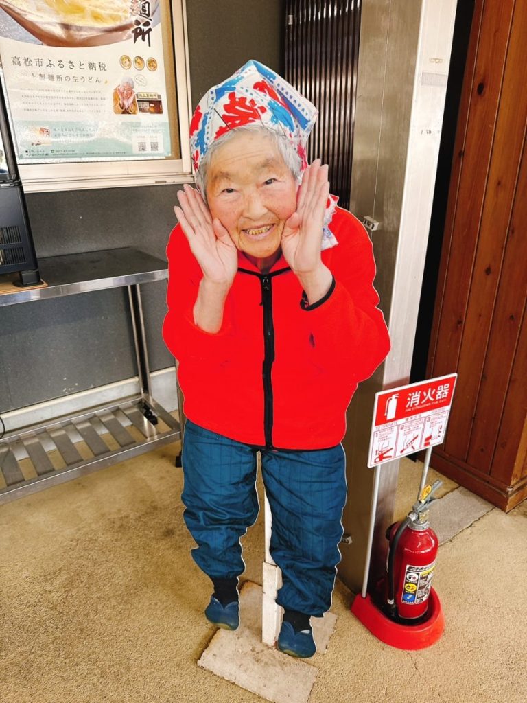 すでにおなか一杯ですが出発まで時間があったのと、こんぴらさんの参道のうどん屋で見かけた「ヤドンのおあげ」がトッピングであったので食べたくて入りました!