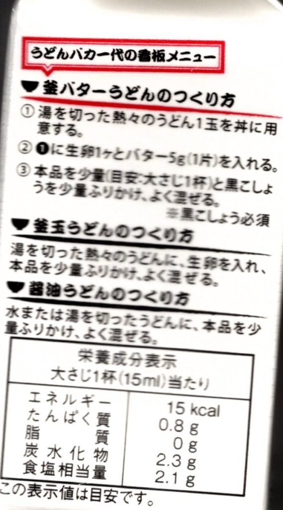 ・だし醤油(大さじ2) …釜バターと醤油うどん(冷)それぞれ大さじ1