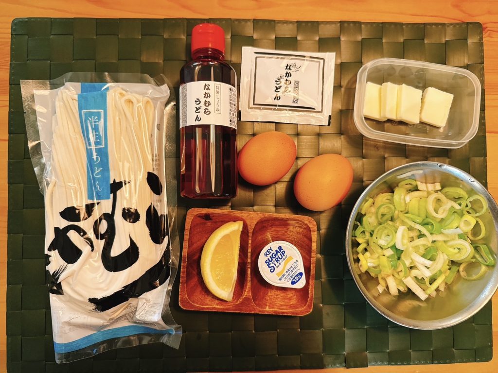今回は1袋(3人前)を食べようと、「釜たま」2人前分と「ぶっかけ」1人前分の材料を用意しました。