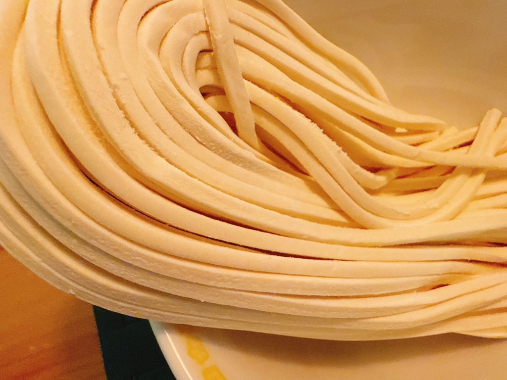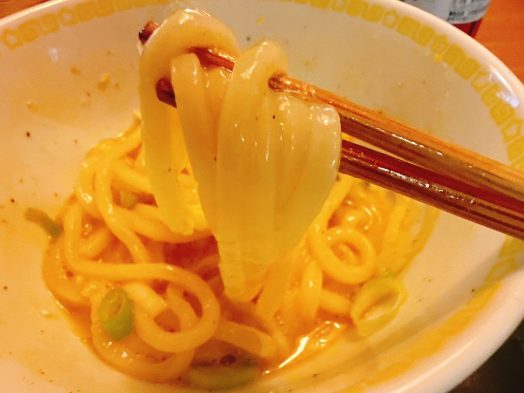 あたたかい麺はつるつるした滑らかな舌ざわりで噛むともちもちしていて、しっかりしたコシもあって激うまでした(*’▽’)