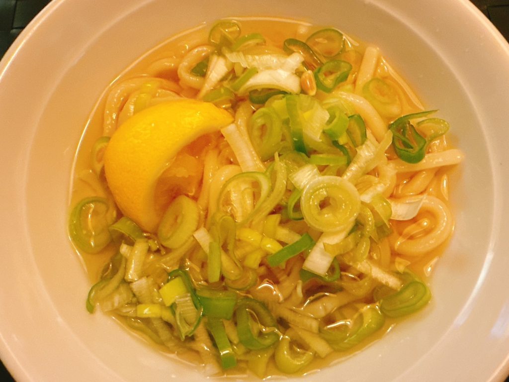 だしの効いてるうどんつゆに、ほどよい甘みとレモンの爽やかな酸味が加わってたまりませんでした!
