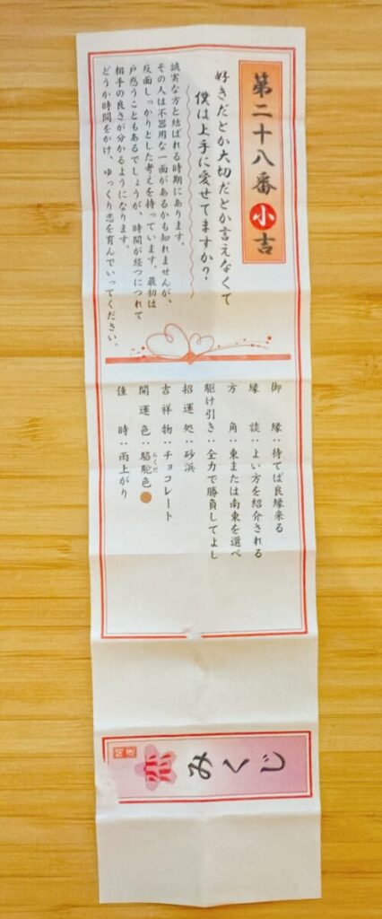 なんと今まで買ったものとは違い「恋みくじ」がついてきます。