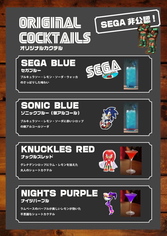 はい出ました「セガ非公認」!!非公式カクテルを勝手に作って振る舞ってました!セガに関わる全ての人々に心の中で謝罪しながら・・・(ホントか?)
