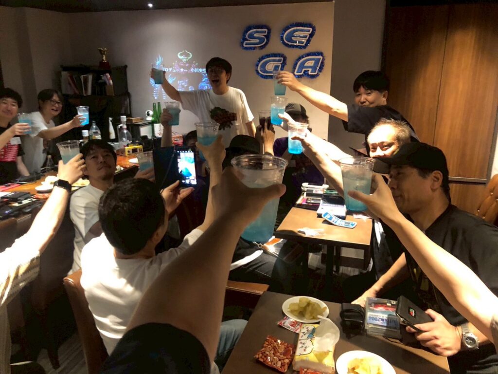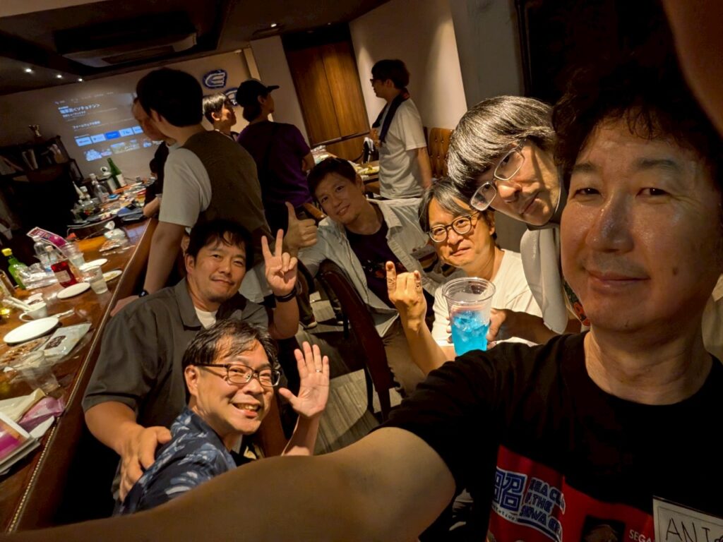 一息ついて皆んなと戯れます!これだけの人数のドリンクほぼ一人で捌くのメチャクチャ大変でしたが部長を筆頭に「昭和のセガ部(仮)」メンバーの連携で乗り切りました!やっと一息タイムです。